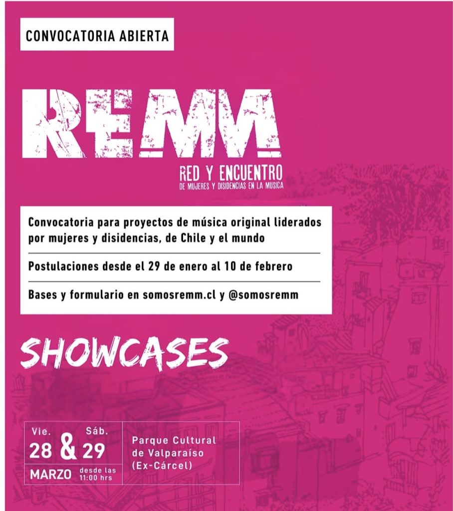 Con el objetivo de generar una red de colaboración y circulación nacional, que fomente las buenas prácticas para disminuir la brecha de género en el ecosistema de la música, e impulse el mejoramiento de las condiciones laborales para mujeres y disidencias en la música nacional es que nace REMM: Red de Encuentro de Mujeres y Disidencias en la Música, un espacio que agrupa al variado ecosistema que existe actualmente en el país y que está formado por agentes, artistas y organizaciones que han querido trabajar colaborativamente desde las diferentes regiones.
