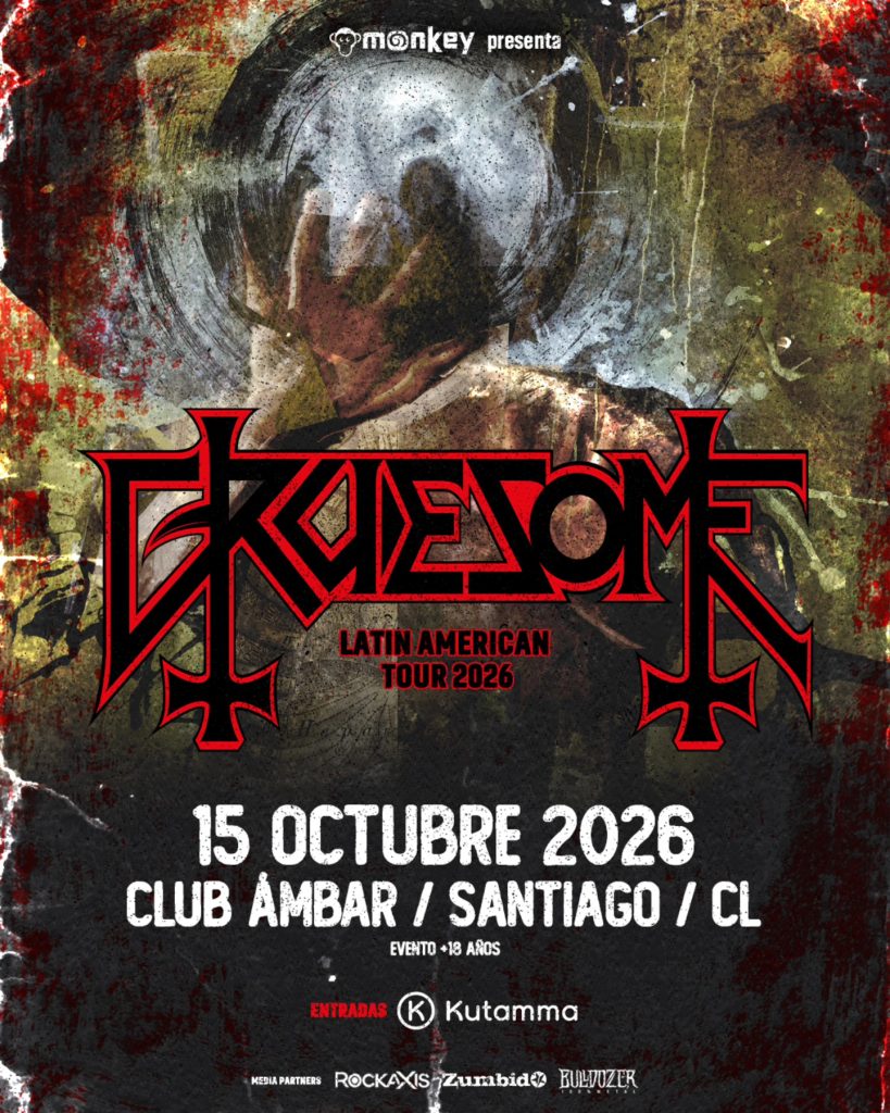 El legado técnico y la brutalidad de la era dorada del Death Metal llegarán a San7ago el próximo 15 de octubre de 2026. Gruesome, la banda que ha encarnado el espíritu de Chuck Schuldiner, se presentará en el escenario del Club Ámbar (Recoleta) en el marco de su La7n American Tour 2026 que los hará visitar México, Costa Rica, Colombia, Perú, Argen7na y Brasil, además de nuestro país.