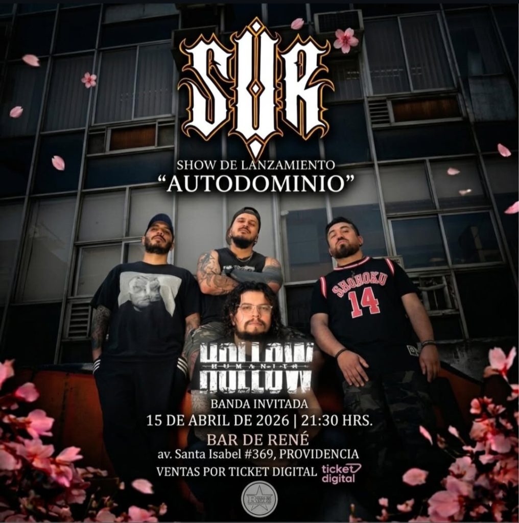 Formados en Santiago en 2021, SUR se posiciona como una propuesta sólida dentro de la escena nacional, explorando los límites entre el hardcore y el metal con un sonido visceral, intenso y profundamente humano. La banda está integrada por Javier Arancibia (voz), John Collyer (guitarra), Claudio Alonso (bajo) y Erre (batería).